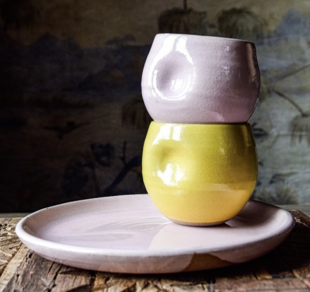 Bobble kaffekopp er heilt ny kopp her på Reinrosa. Den ligg godt i handa og held på varmen i kaffien då kanten rundar innover. Bobble koppen er her i ein gul blank glasur. Det er innsøkk i koppen på begge sider for godt grep.