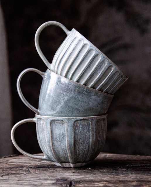 Snøsøte cappuccinokopp tilhører serien av cappuccinokopper som har smale karvede riller i overflaten. Glasuren er den mest spennende glasuren me har på Reinrosa produkta, den er brenntgrøn og endrar seg litt for kvar produksjon. Nokre gongar er glasuren metta og blank, andre gongar kjem den ut av ovnen i ein meir brennt grønn farge. Det er mykje spel og ugjevn effekt i denne glasuren. Derfor kan glasusren framstå som tynn enkelte stader mens den kanskje renn andre stader. Den kan variere mellom ein brent brunfarge, grøn og enkelte stader lys gul på same kopp. Koppen er 6,5cm høy og 9 cm i diameter, den rommer 150ml kaffe. Dei er runde i botnen, perfekt designa for latteart.